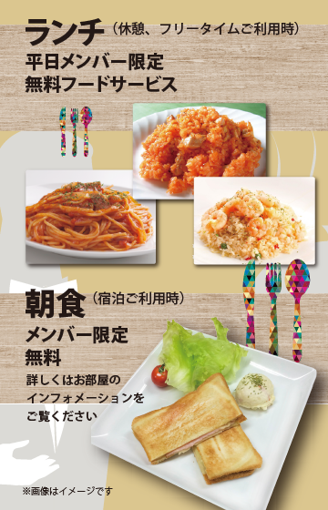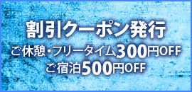 宿泊利用500円引き、ご休憩、サービスタイム300円引き。無料飲食メニュー、ポイントを貯めて景品・宿泊券に交換。メンバーズカードはフロントにて300円で発行しております。
